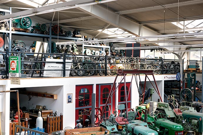 In der Technischen Sammlung Hochhut kann jeder Besucher auf seine eigene Entdeckungsreise gehen: hier eine historische Werkzeugmaschine betrachten, da einen großen dampfbetriebenen Stationärmotor bewundern, dort ein Hochrad aus den Pionierjahren des Fahrzeugbaus bestaunen.
