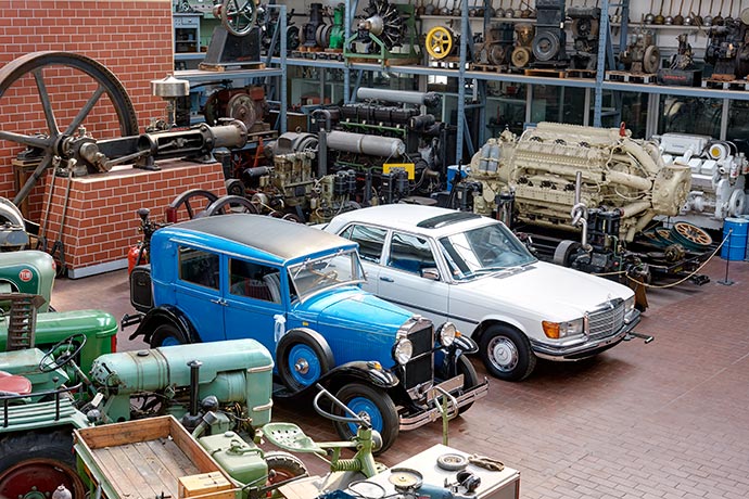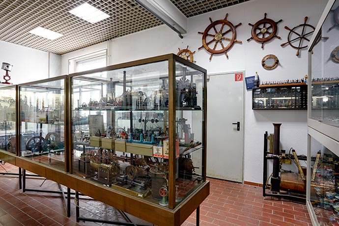 Motoren in allen Größen und Epochen bilden einen Schwerpunkt der Motorensammlung. Einen festen Bestandteil der Sammlung bildet eine Ausstellung historischer Dampfmaschinen- und Motorenmodelle.